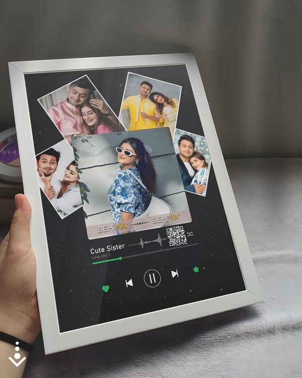 Surprise your sister with this Spotify-inspired custom photo frame, blending music, memories, and love in one beautiful design.